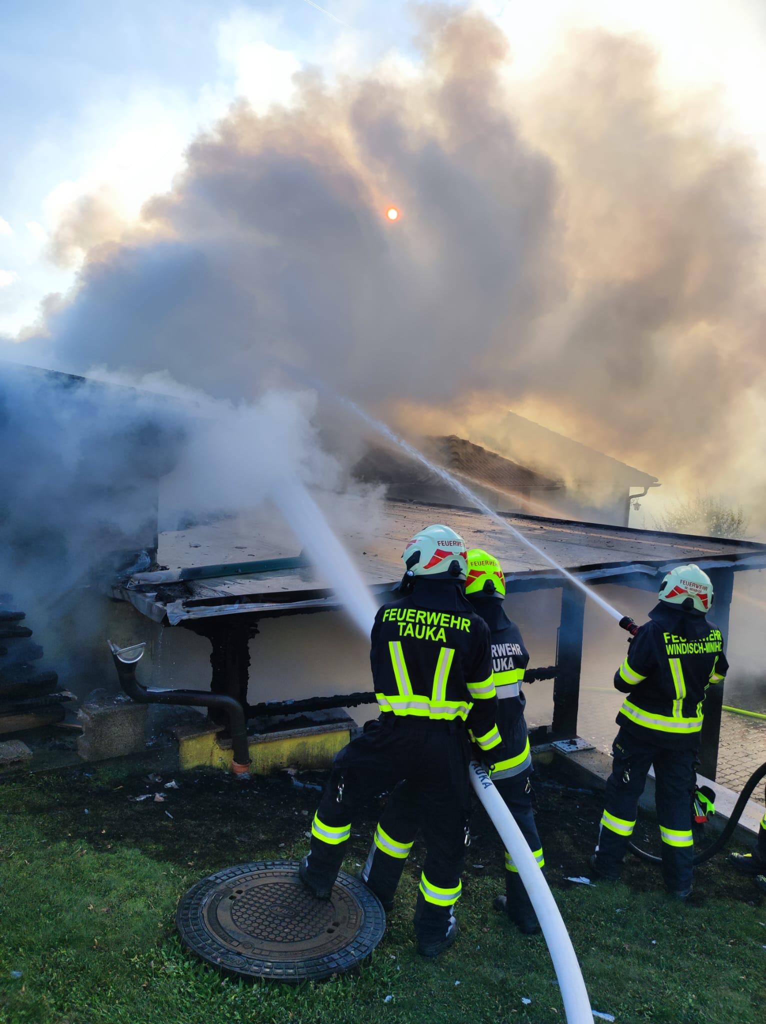 Am Freitag, 10.10., um 15:18 Uhr wurden die 3 Feuerwehren der Marktgemeinde Minihof-Liebau (Tauka, Minihof-Liebau, Windisch-Minihof) zu einem Gebäudebrand in Tauka alarmiert.