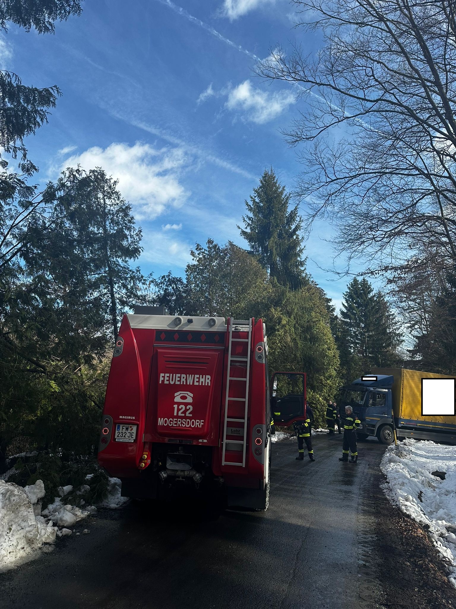 Am Montag zu Mittag kam in Mogersdorf-Berg (Sandriegel) ein LKW aus unbekannter Ursache auf das mit schneebedeckte Bankett und rutschte von der Fahrbahn ab. Das Schwerfahrzeug kam vor einem Wasserpassain zum stehen und musste von der Feuerwehr Mogersdorf-Ort mit der Seilwinde geborgen werden.