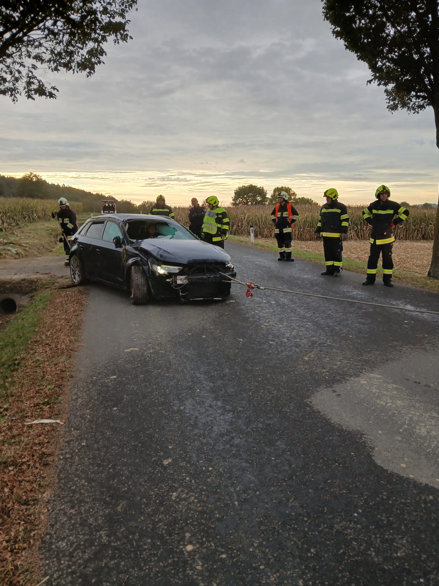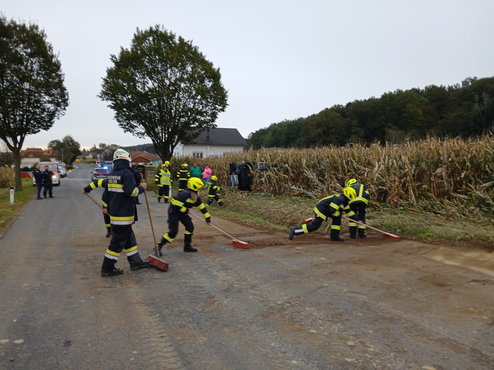 Ein PKW kam von der Fahrbahn ab, überschlug sich und kam im angrenzenden Maisfeld zum Liegen. Die Fahrzeuglenkerin war beim Eintreffen der Einsatzkräfte bereits aus dem Fahrzeug befreit und wurde vom Roten Kreuz nach Erstversorgung ins Krankenhaus gebracht.