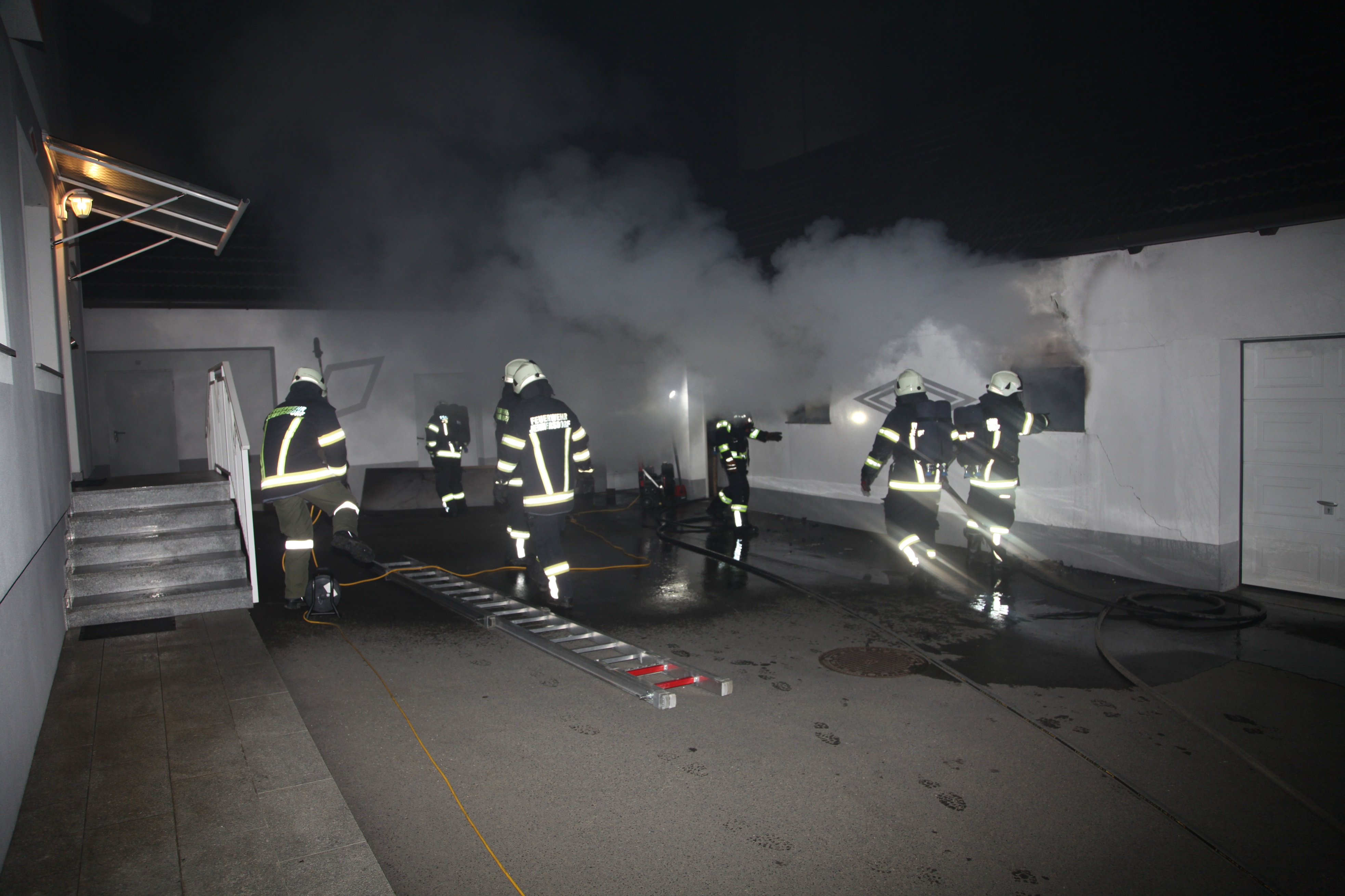 Beim Eintreffen der Feuerwehren stand die Werkstätte in Vollbrand. Durch den Einsatz mehrerer Atemschutztrupps gelang es, gegen 05.00 Uhr den Werkstättenbrand unter Kontrolle zu bringen. Zudem musste eine Gasflasche aus dem Brandraum getragen werden. Einsatzleiter Alfred Gratzer gab um 05.30 Uhr die Meldung "Brand aus". Durch das Feuer wurden keine Personen oder Tiere verletzt.