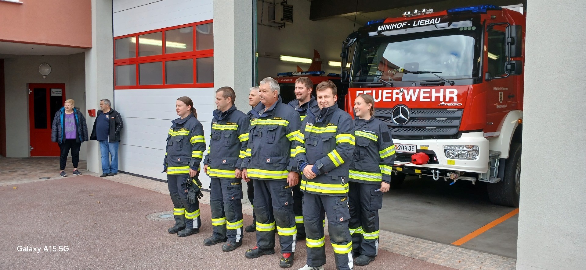 Der Einsatztrupp der Feuerwehr Minihof-Liebau bestand aus Zugskommandantin OBM Evelyn Haberl als Gruppenkommandantin, Abschnittsfeuerwehrkommandant ABI Reinhard Poglitsch als Maschinist, HLM Reinhard Prem als Melder, dem Atemschutztrupp bestehend aus Feuerwehrkommandant OBI Alois Knaus, OFM Peter Huber und LM Daniel Maurer-Zotter, sowie Wassertruppmann FM Lisa Maurer-Zotter.