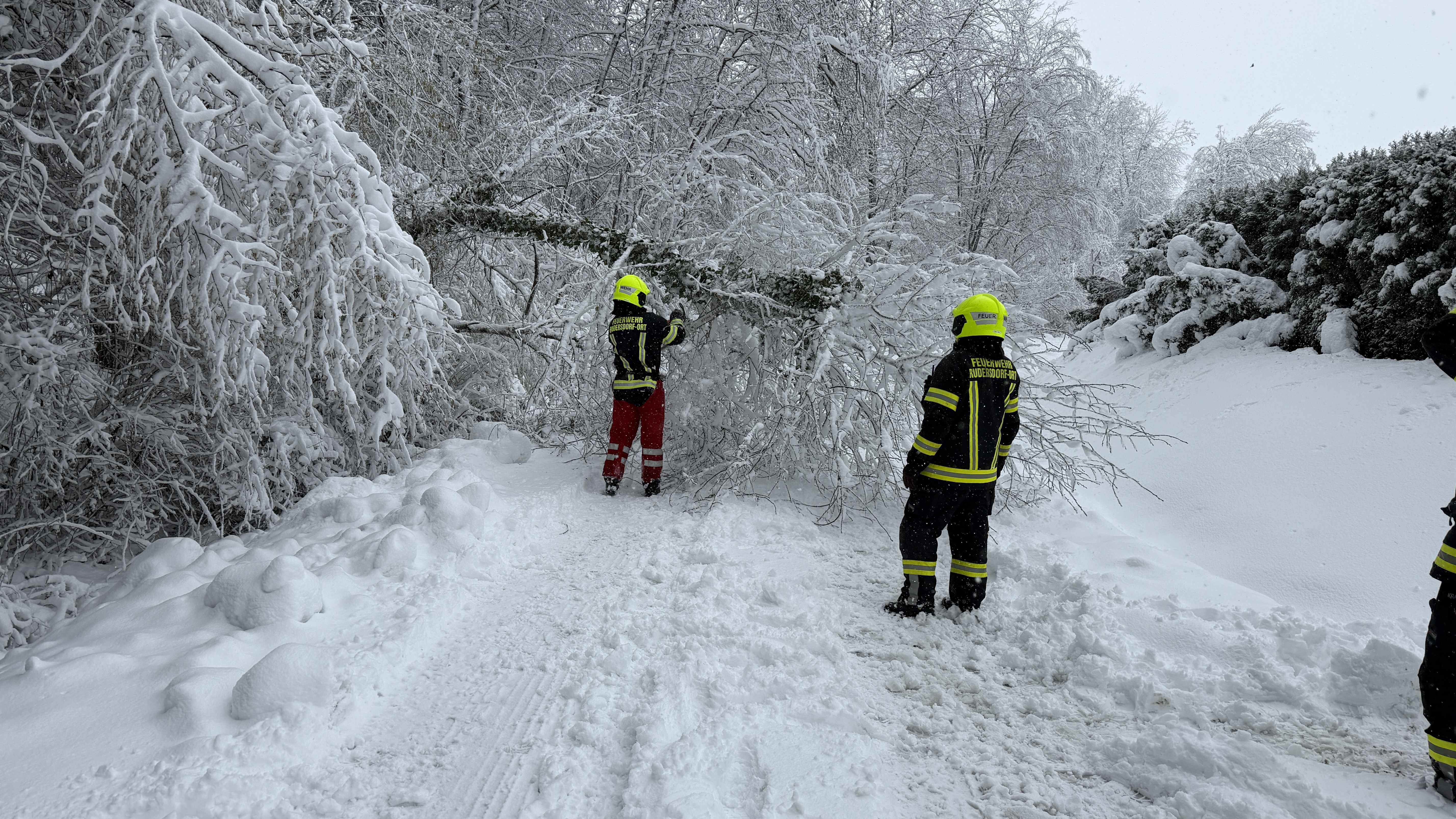 Besonders kritisch ist die Lage im Süden des Landes. Im Bezirk Jennersdorf sorgte der nasse, schwere Neuschnee für massiven Baumbruch. Zahlreiche Verkehrswege wurden durch umgestürzte Bäume blockiert und mussten unter schwierigen Bedingungen freigemacht werden. Allein im Bezirk Jennersdorf verzeichnete die Landessicherheitszentrale (LSZ) knapp 75 Alarmierungen; viele weitere Einsätze wurden von den Ortsfeuerwehren direkt koordiniert.