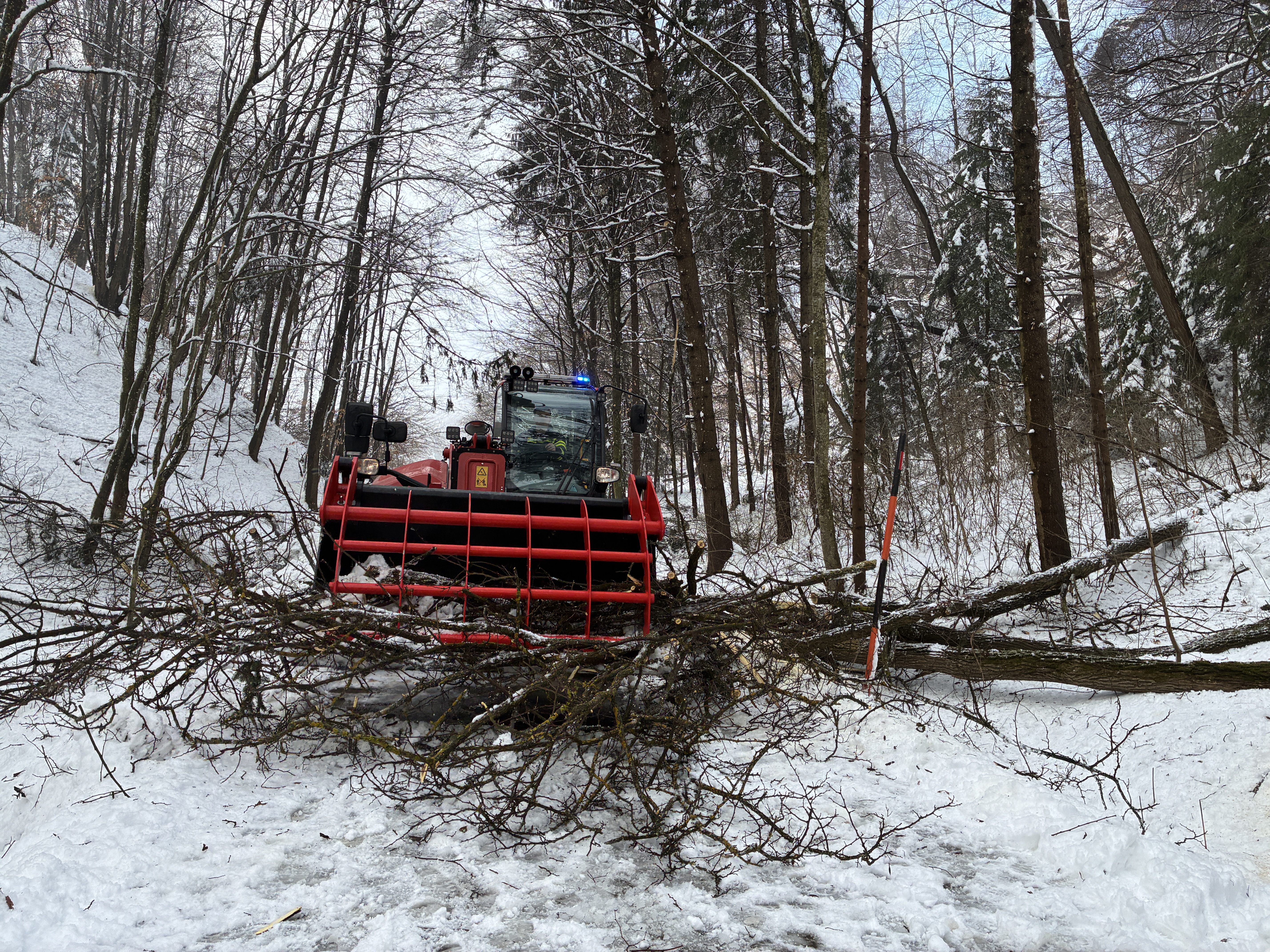 Parallel dazu kamen Teleskoplader der Feuerwehren Leithaprodersdorf und Oberpullendorf sowie des Landesfeuerwehrkommandos zum Einsatz, um beschädigte Stromleitungen zugänglich zu machen, schwere Schneelasten zu entfernen und Verkehrswege freizuräumen-