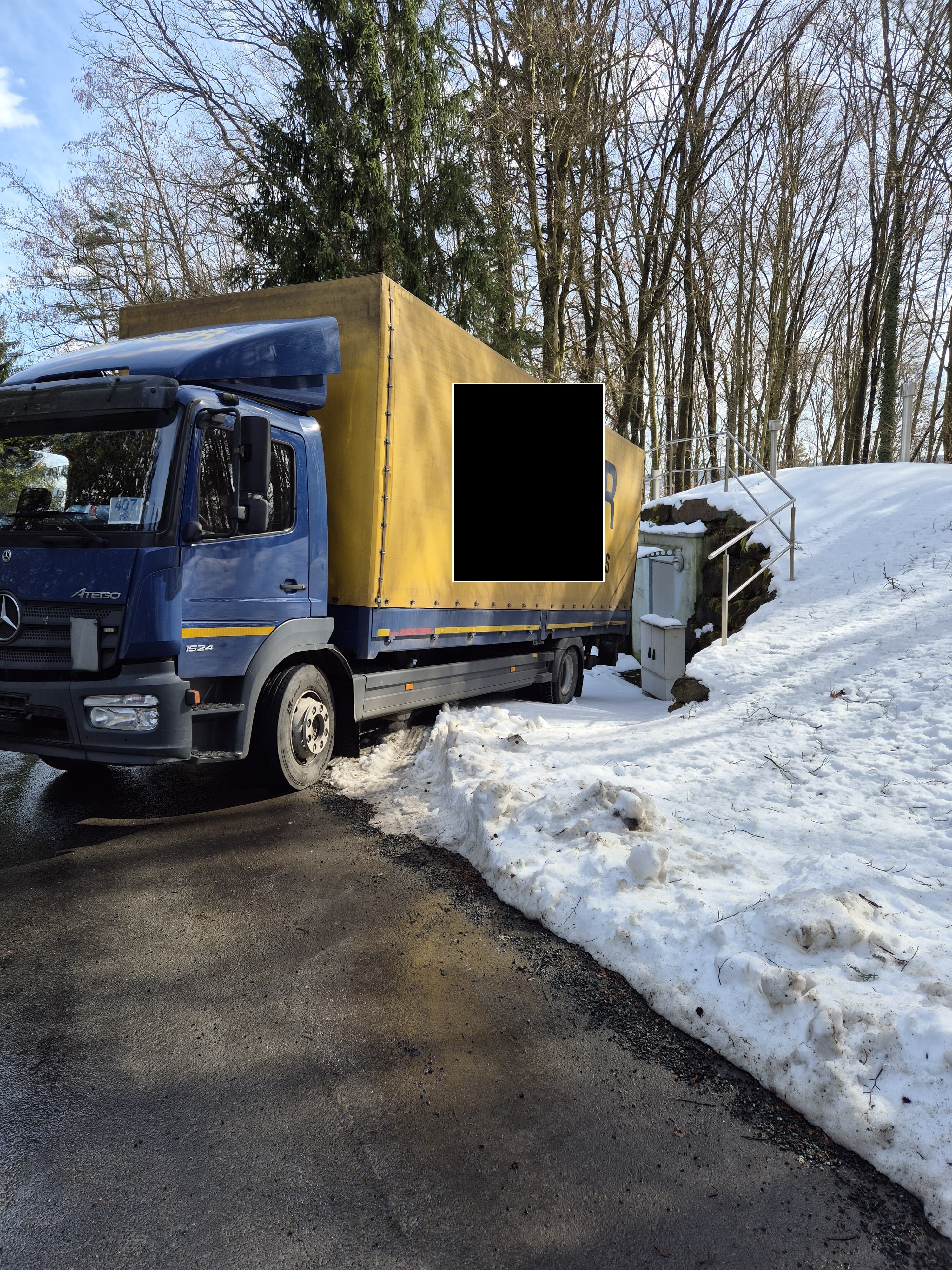 Am Montag zu Mittag kam in Mogersdorf-Berg (Sandriegel) ein LKW aus unbekannter Ursache auf das mit schneebedeckte Bankett und rutschte von der Fahrbahn ab. Das Schwerfahrzeug kam vor einem Wasserpassain zum stehen und musste von der Feuerwehr Mogersdorf-Ort mit der Seilwinde geborgen werden.
