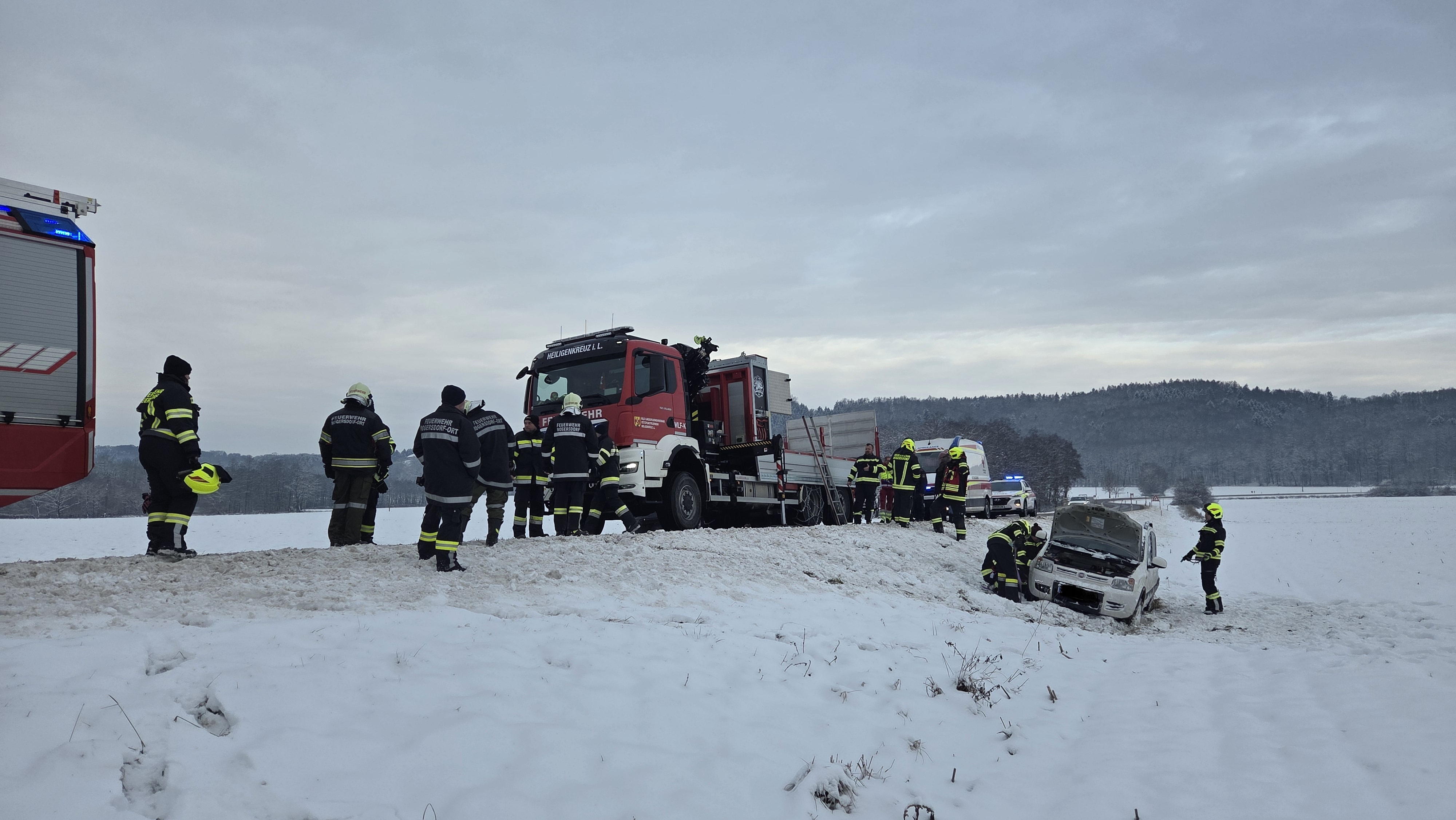 Am 07.01.2026 um 08:57 wurde die Feuerwehr Mogersdorf-Ort zusammen mit der Feuerwehr Heiligenkreuz/L. zu einem Verkehrsunfall mit eingeklemmter Person alarmiert.