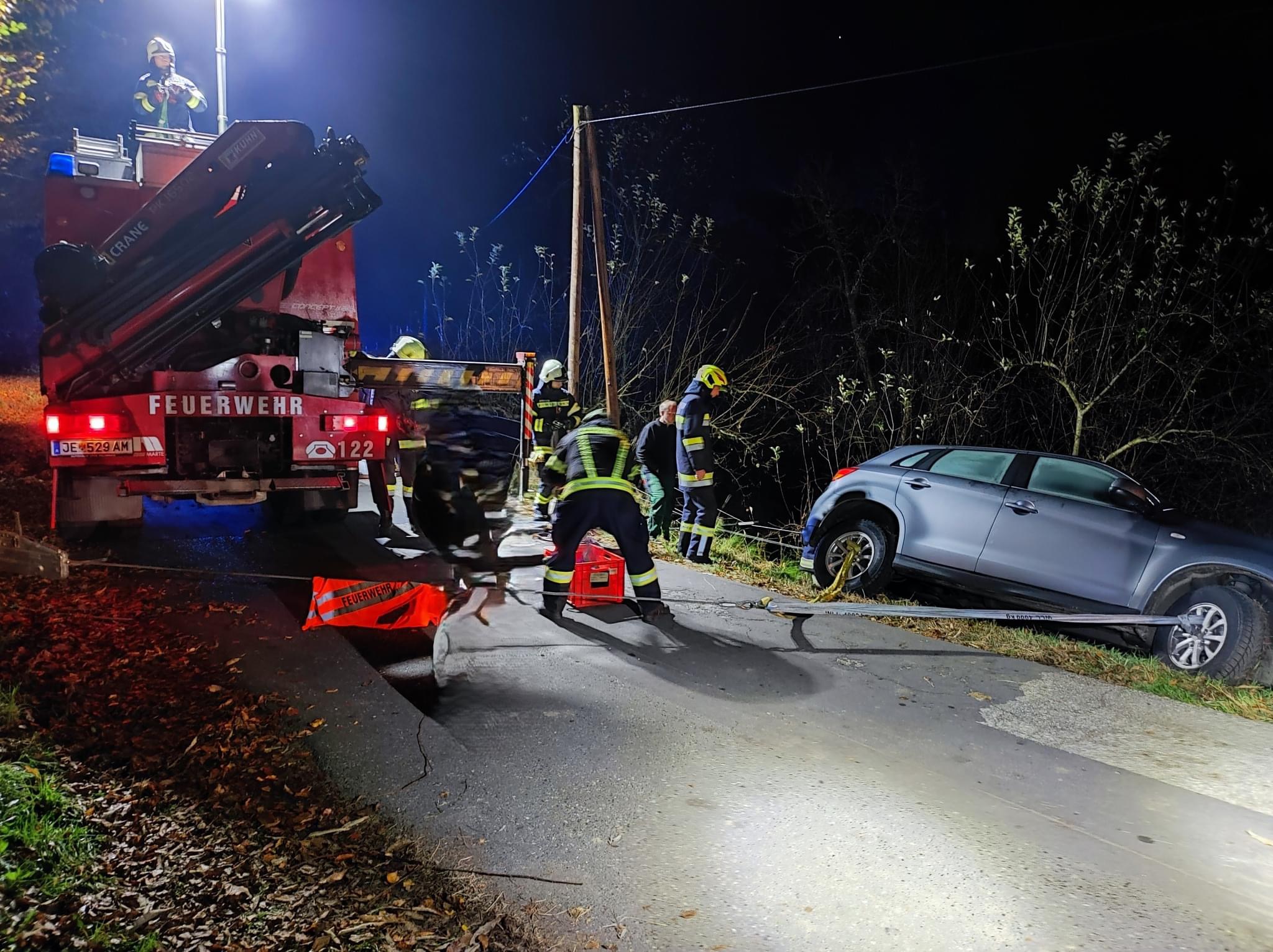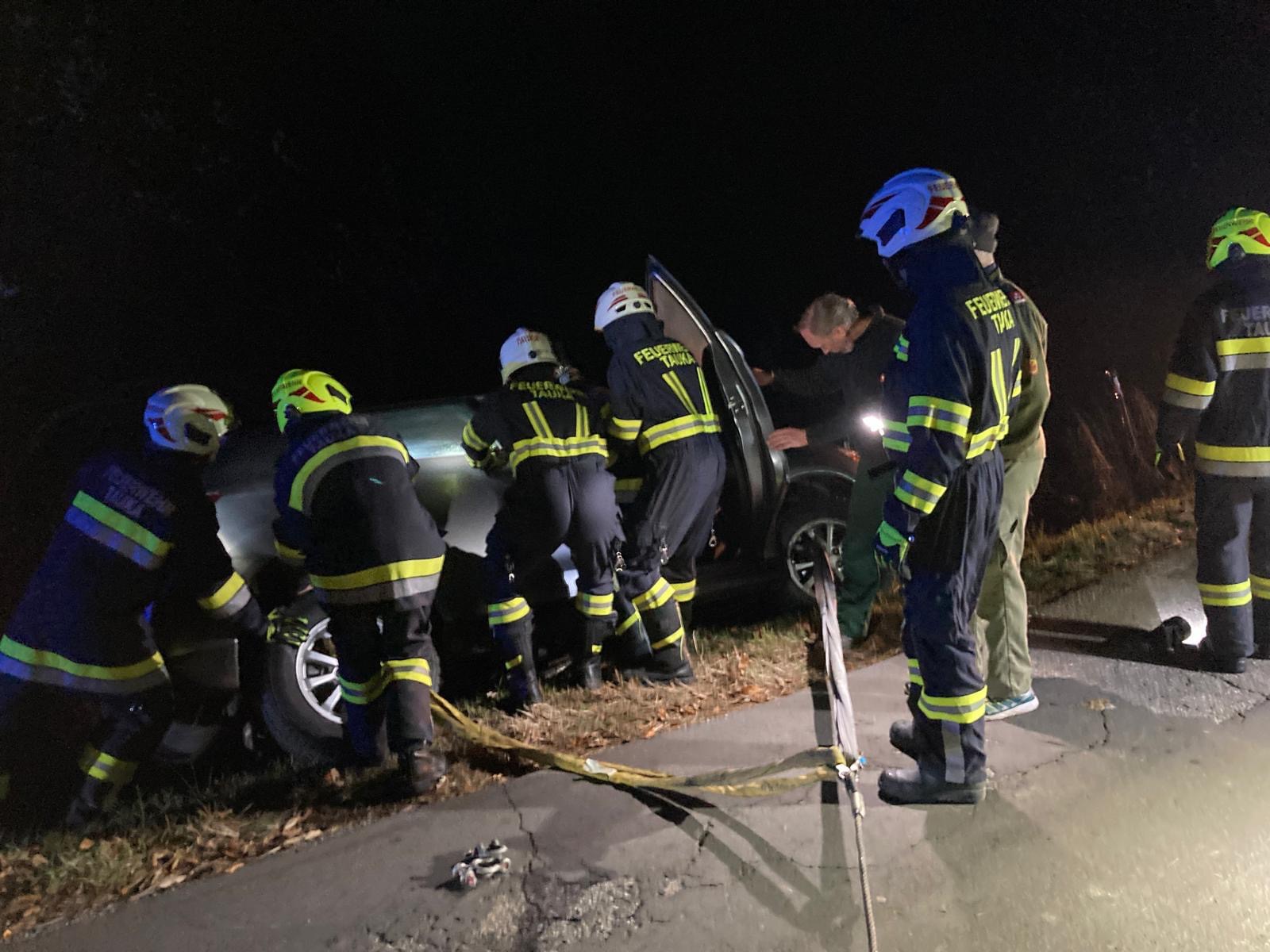 Ein Lenker hatte offenbar durch die Dunkelheit und dem dichten Nebel die Orientierung verloren und kam von der Straße ab. Das Fahrzeug blieb an einem Abhang stehen und drohte mitsamt Lenker den Abhang hinabzustürzen. Sofort nach dem Eintreffen wurde der PKW von der Feuerwehr Tauka mit dem Greifzug gesichert und der Fahrzeuglenker befreit. Für die Bergung des Fahrzeuges wurde das SRF der Feuerwehr Jennersdorf nachalarmiert.
