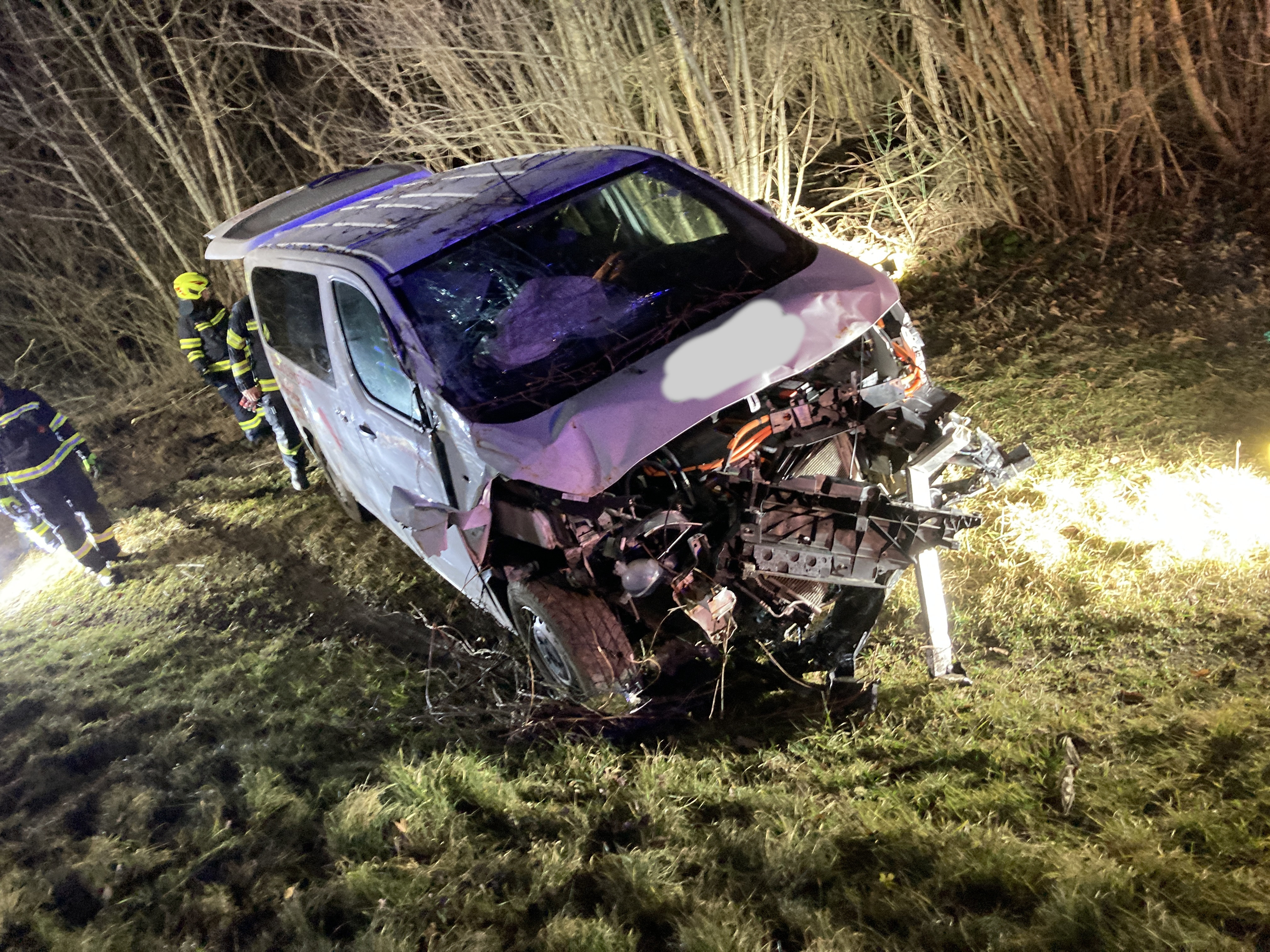 Am Einsatzort eingetroffen stellte sich heraus, dass ein vollbesetzter Elektrobus von der Fahrbahn abgekommen ist und im dichten Anwuchs stand. Die Verletzten wurden bereits vom Roten Kreuz versorgt und die Einsatzstelle von der Polizei Minihof-Liebau abgesichert. Die Feuerwehren stellten den Brandschutz sicher und trennten als erstes die Batterie des Fahrzeugs vom Stromkreis. Anschließend wurden einige Bäume für die Fahrzeugbergung entfernt und das Fahrzeug mittels Seilwinde wieder auf einen Weg gebracht.