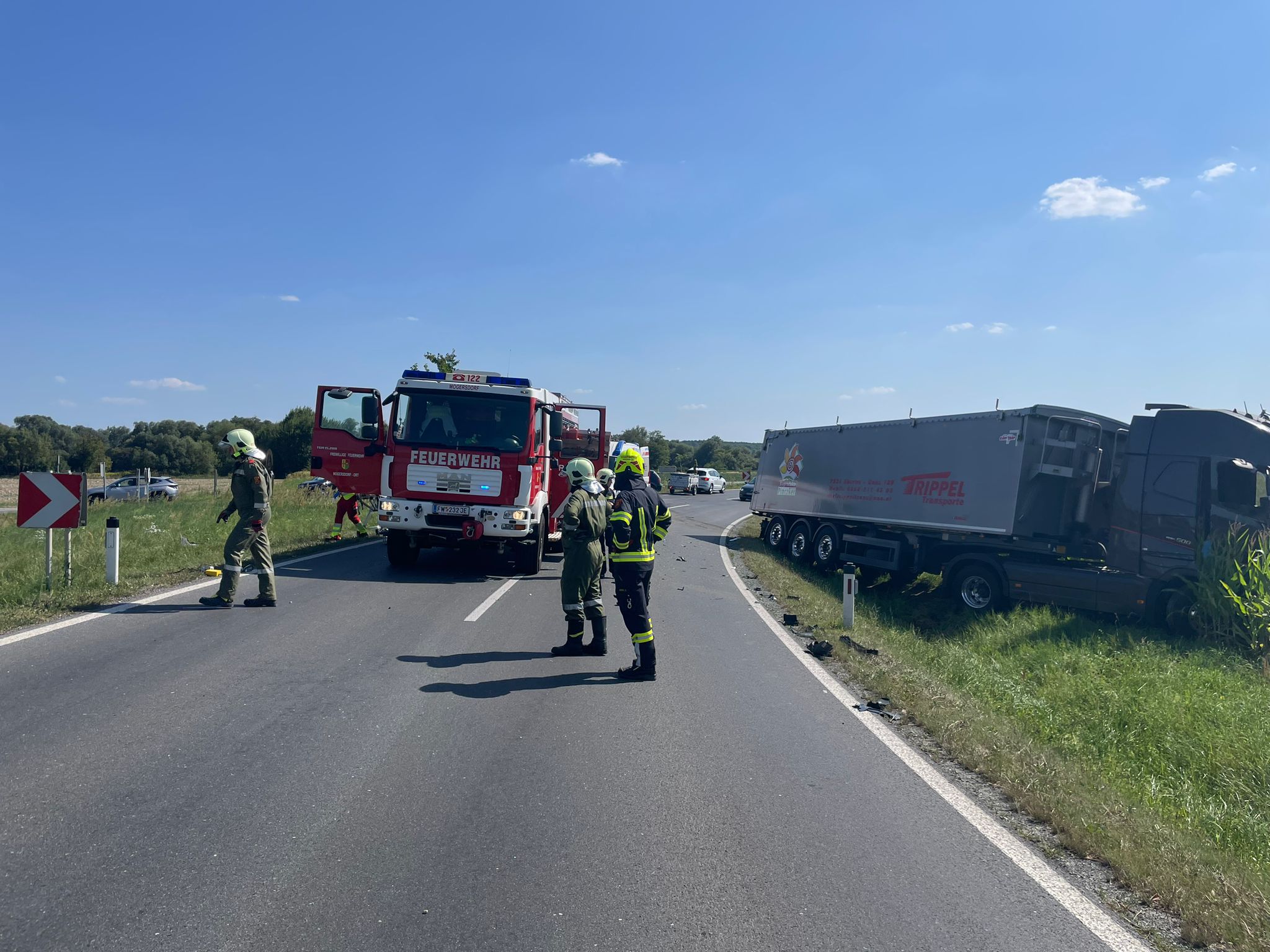 Am Mittwoch nachmittag, 14.08.2025, wurde die Feuerwehr Mogersdorf-Ort - Bezirk Jennersdorf - zu einem Verkehrsunfall mit eingeklemmter Person auf der L116 zwischen Mogersdorf und Heiligenkreuz alarmiert.