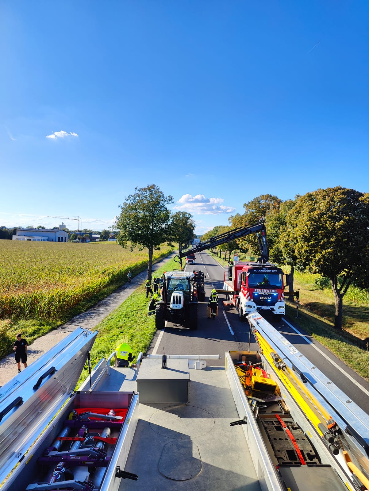 Am Donnerstag, 04. September wurde die Feuerwehr Rudersdorf-Ort zu einer Fahrzeugbergung auf die B65 zwischen Rudersdorf und Dobersdorf gerufen.