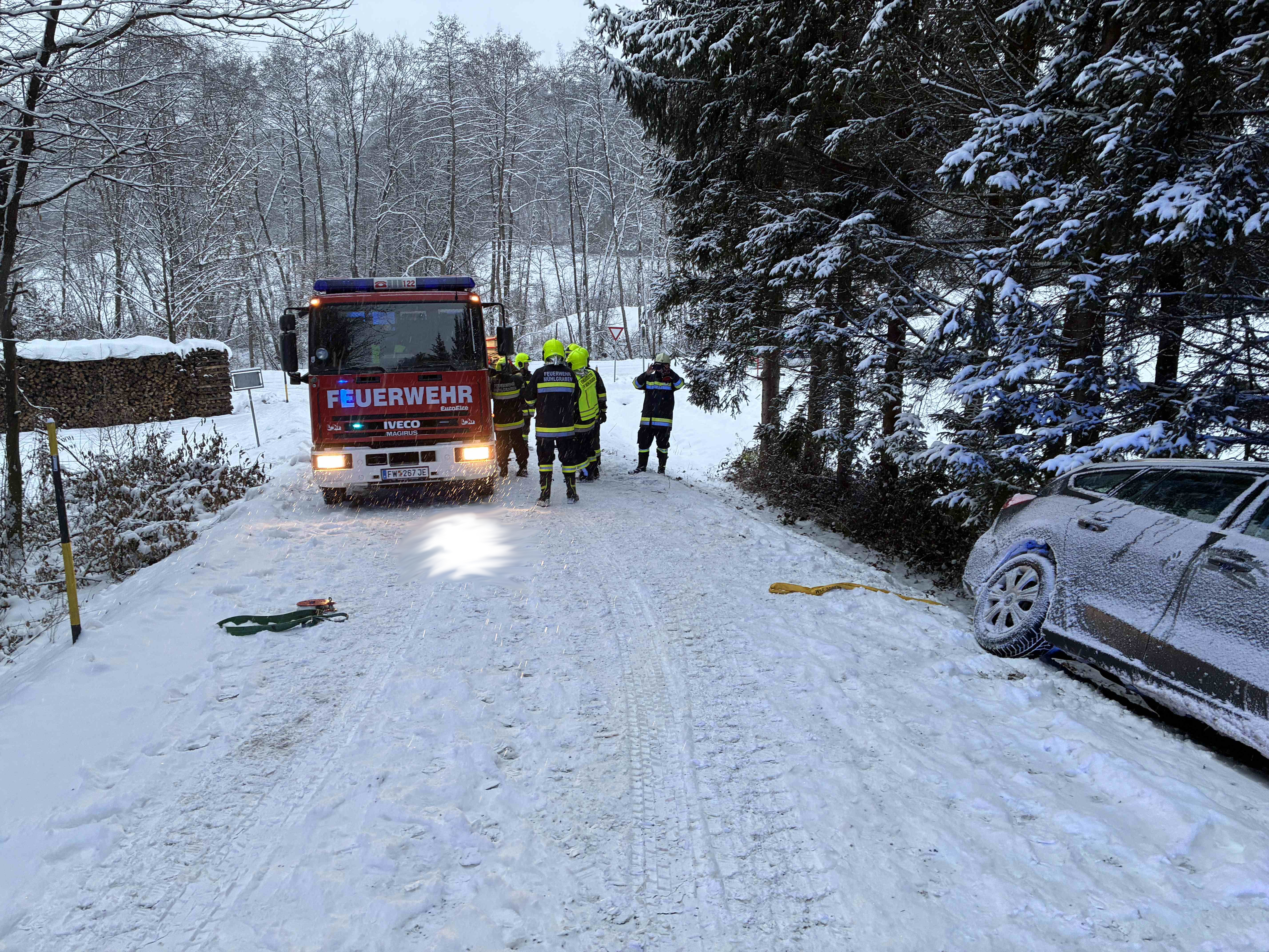 Am Dreikönigstag wurde die Feuerwehr Mühlgraben zu einer Fahrzeugbergung auf den Gamperlberg alarmiert.