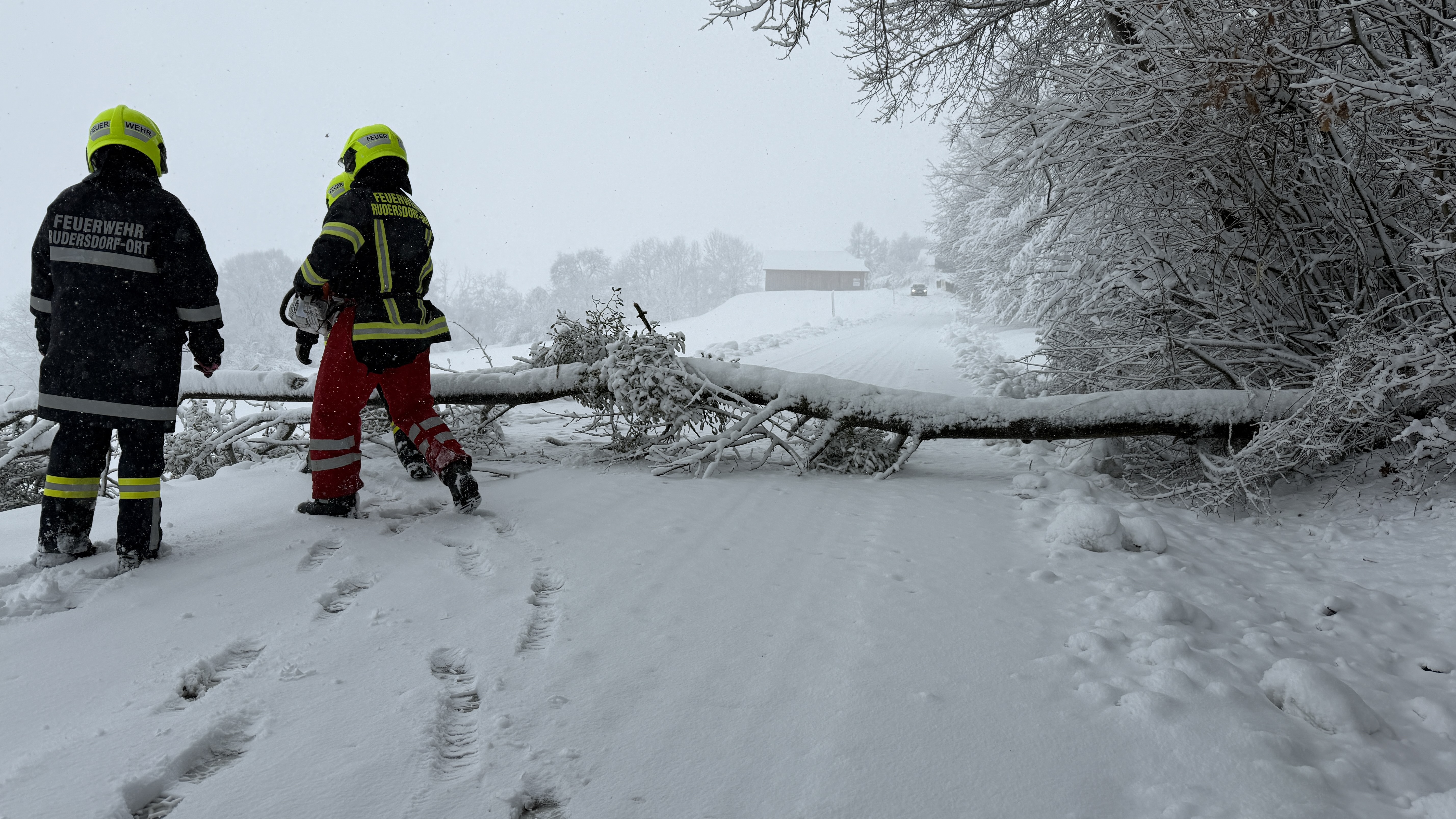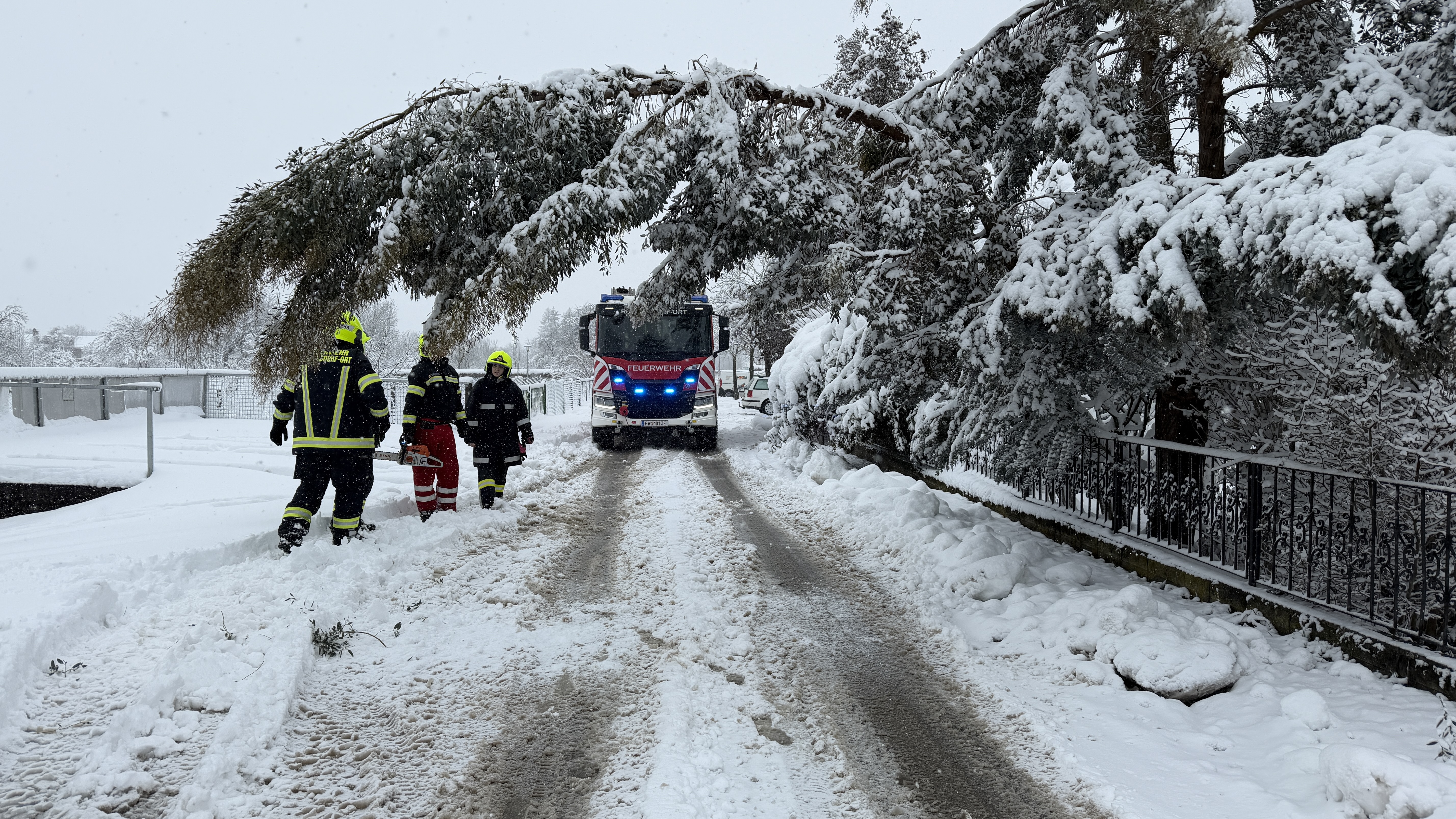 Besonders kritisch ist die Lage im Süden des Landes. Im Bezirk Jennersdorf sorgte der nasse, schwere Neuschnee für massiven Baumbruch. Zahlreiche Verkehrswege wurden durch umgestürzte Bäume blockiert und mussten unter schwierigen Bedingungen freigemacht werden. Allein im Bezirk Jennersdorf verzeichnete die Landessicherheitszentrale (LSZ) knapp 75 Alarmierungen; viele weitere Einsätze wurden von den Ortsfeuerwehren direkt koordiniert.