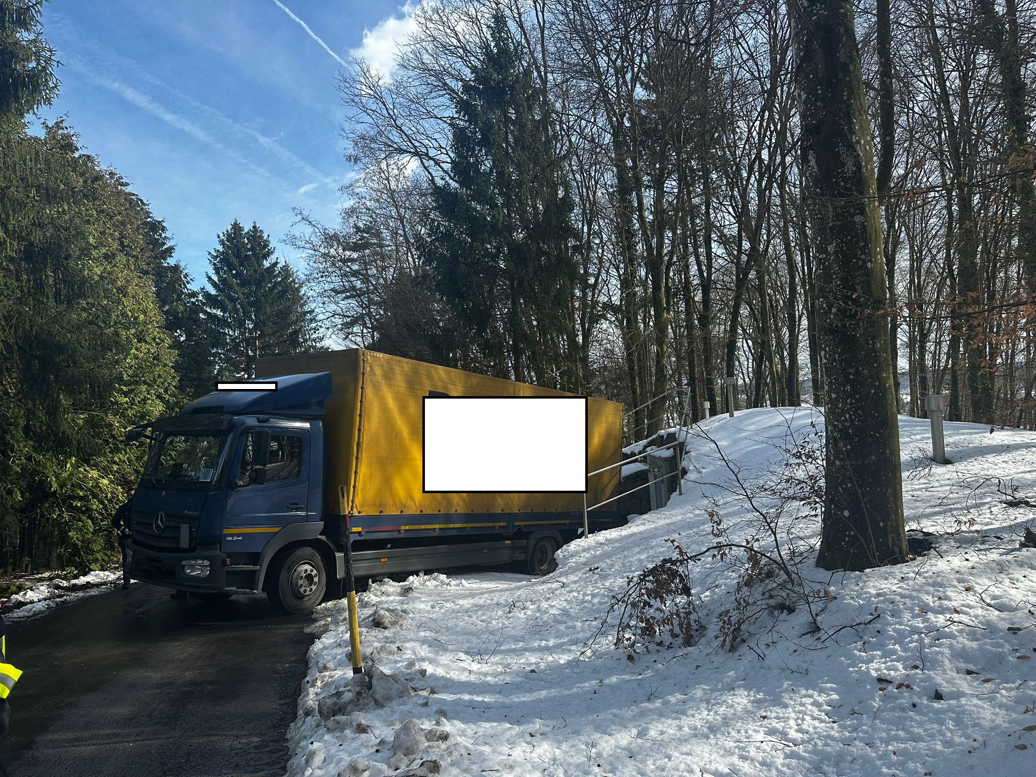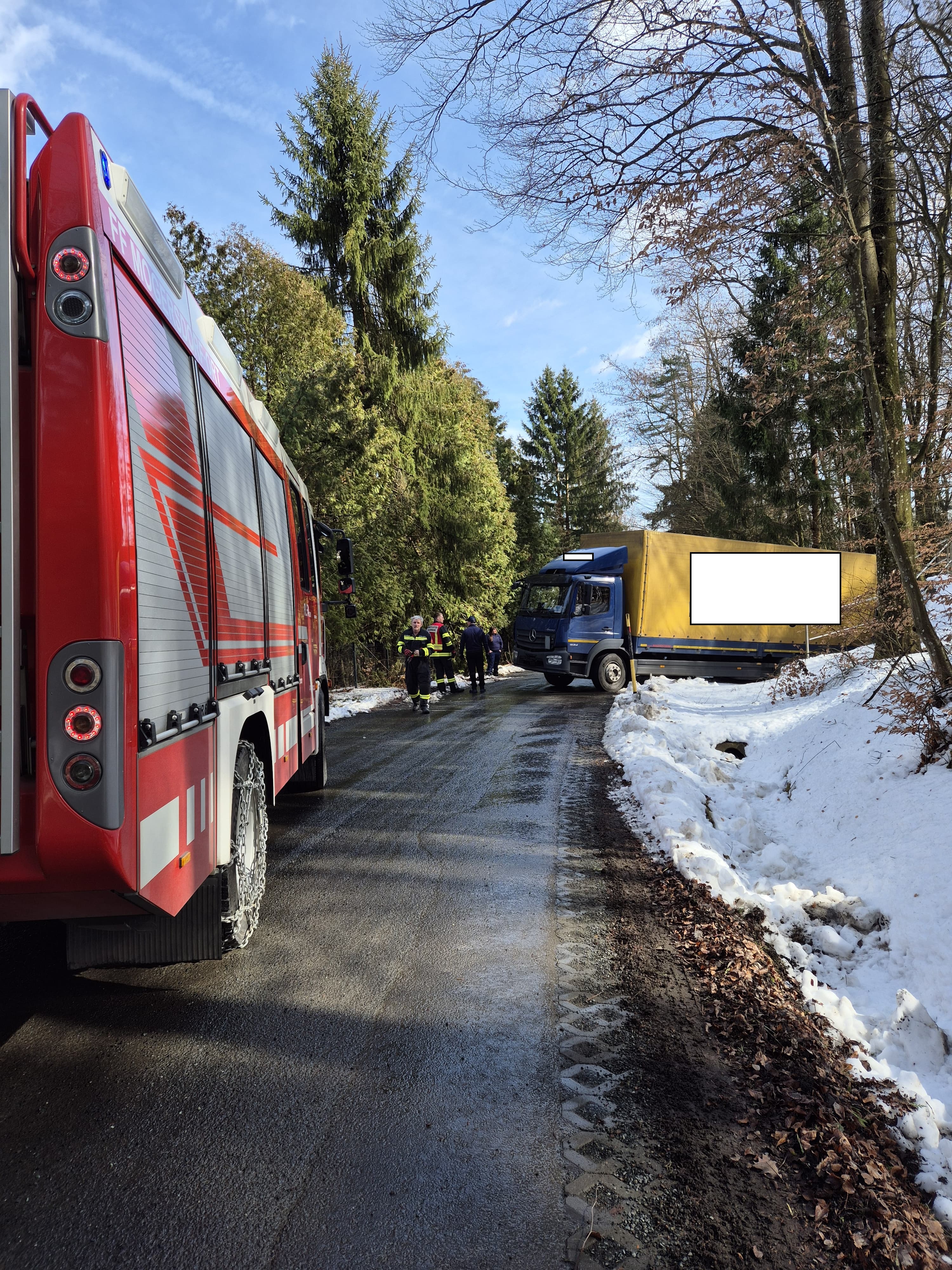 Am Montag zu Mittag kam in Mogersdorf-Berg (Sandriegel) ein LKW aus unbekannter Ursache auf das mit schneebedeckte Bankett und rutschte von der Fahrbahn ab. Das Schwerfahrzeug kam vor einem Wasserpassain zum stehen und musste von der Feuerwehr Mogersdorf-Ort mit der Seilwinde geborgen werden.
